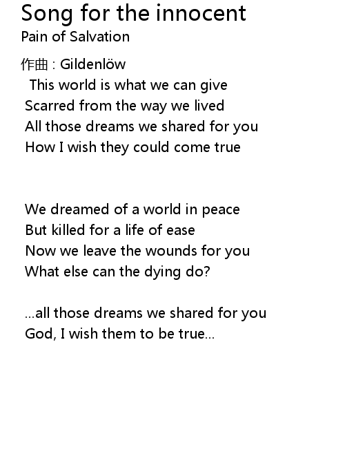 | Song | Song for the innocent |
