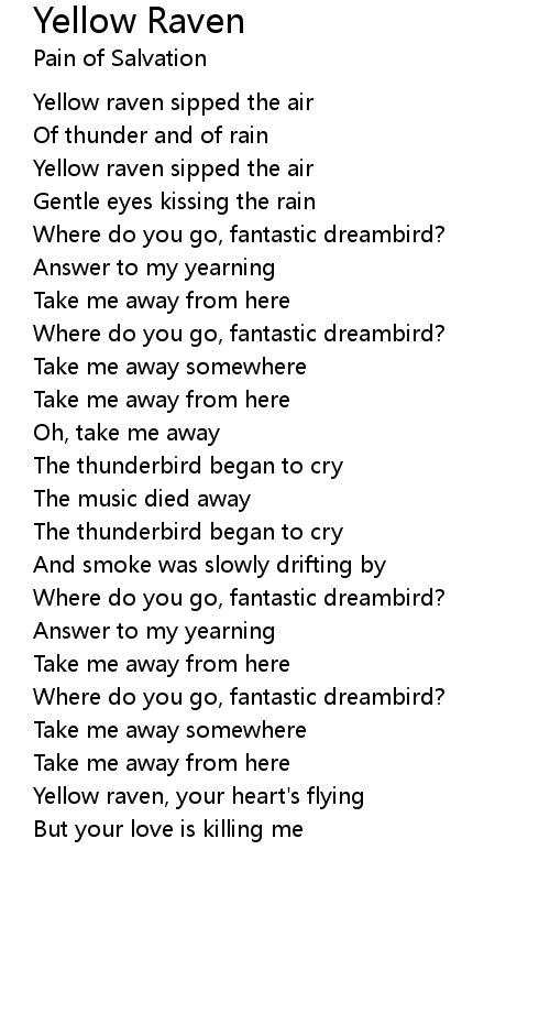 Yellow raven, your heart's flying |