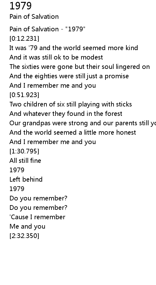 It was '79 and the world seemed more kind |