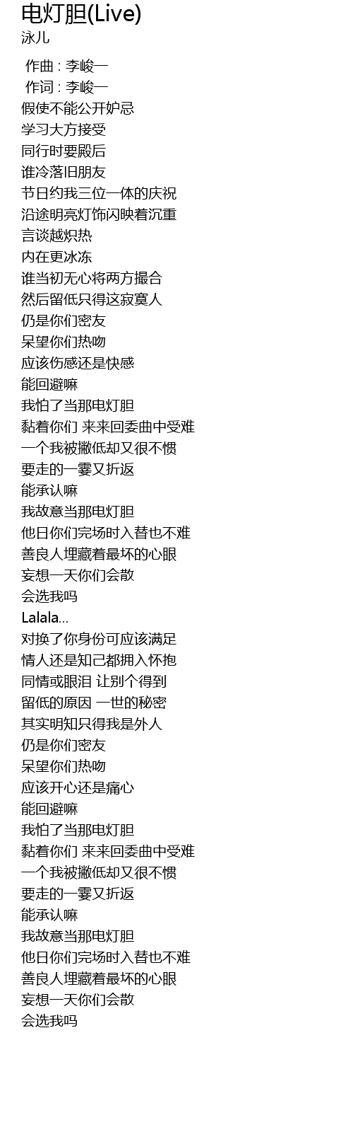 | Song | 电灯胆(Live) |