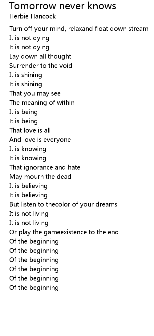 Turn off your mind, relaxand float down stream |