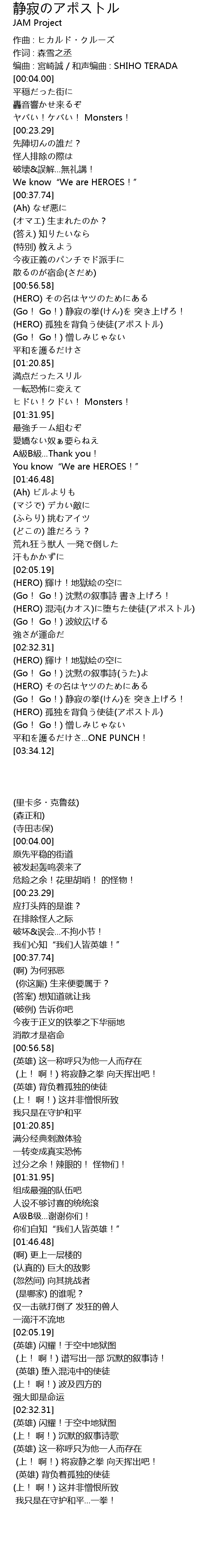 | [01:06.49] | (HERO) 孤独を背負う使徒(アポストル) |