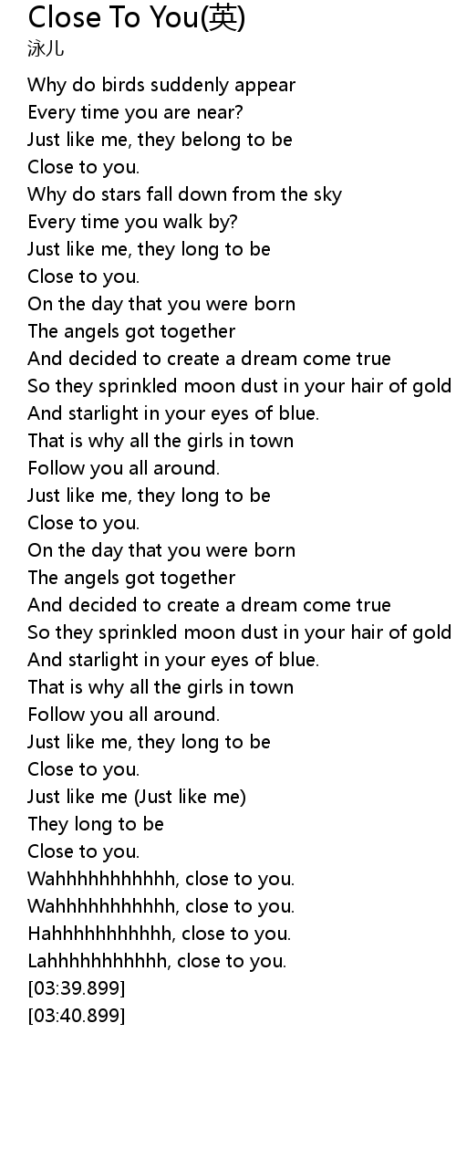 | [00:49.899] | Close to you. |