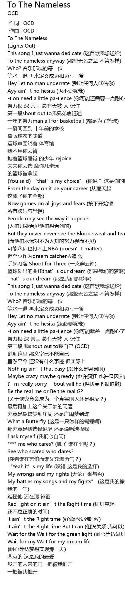 | [00:00.000] | 作词 : OCD |