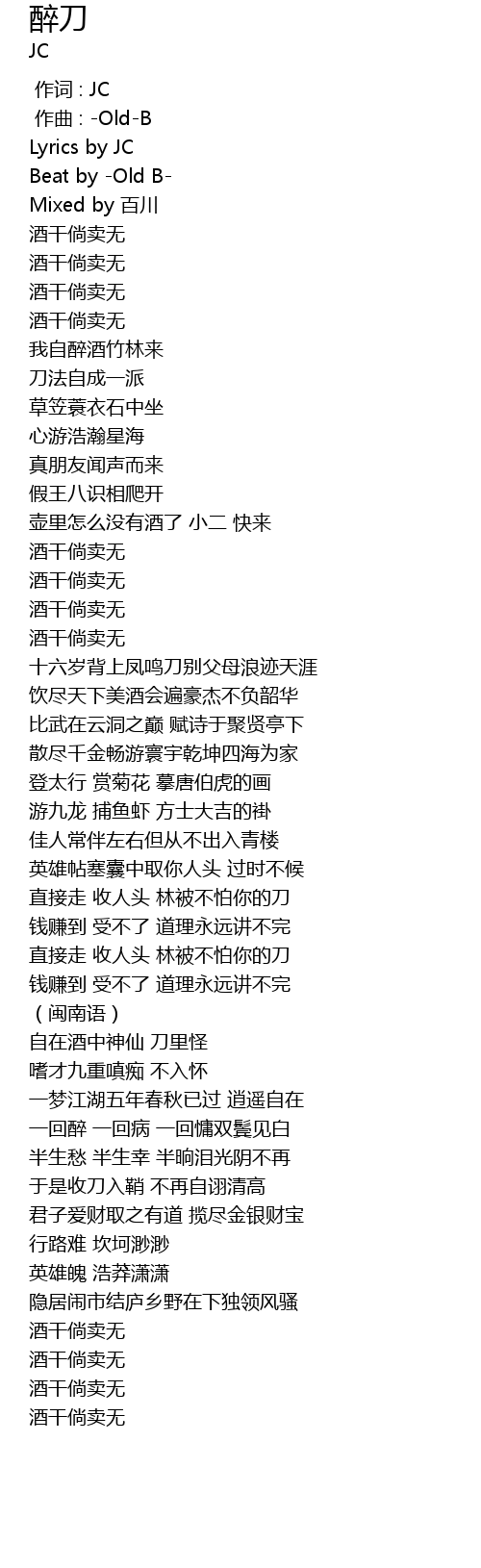 | [00:00.000] | 作词 : JC |