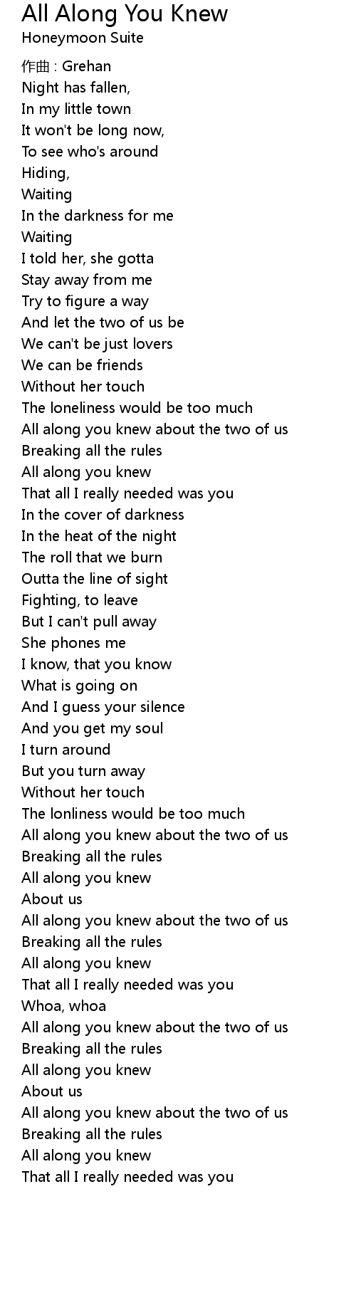 | All along you knew | |