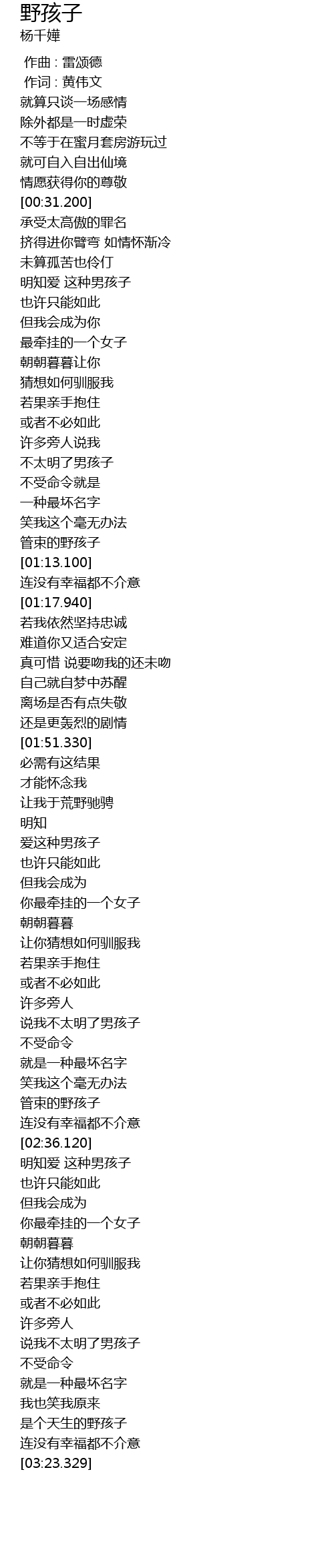 | [02:26.790] | guǎn shù de yě hái zǐ |