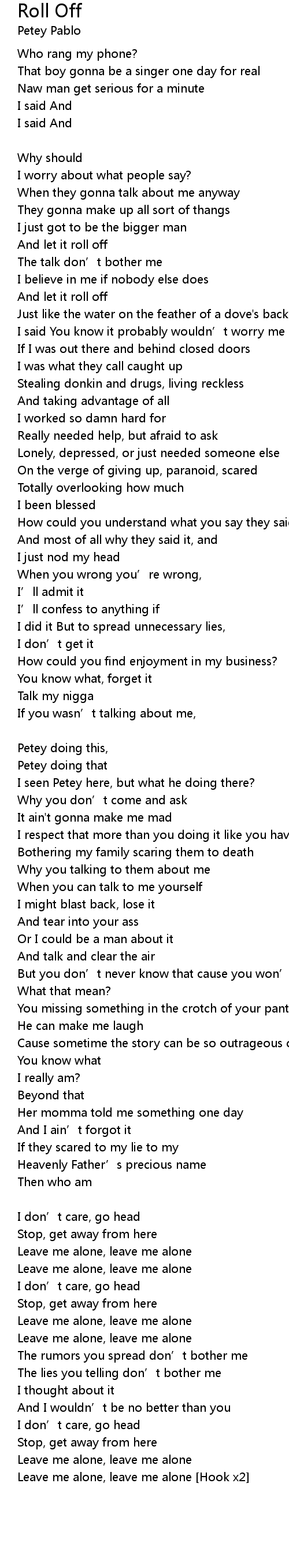 | Leave me alone, leave me alone [Hook x2] |
