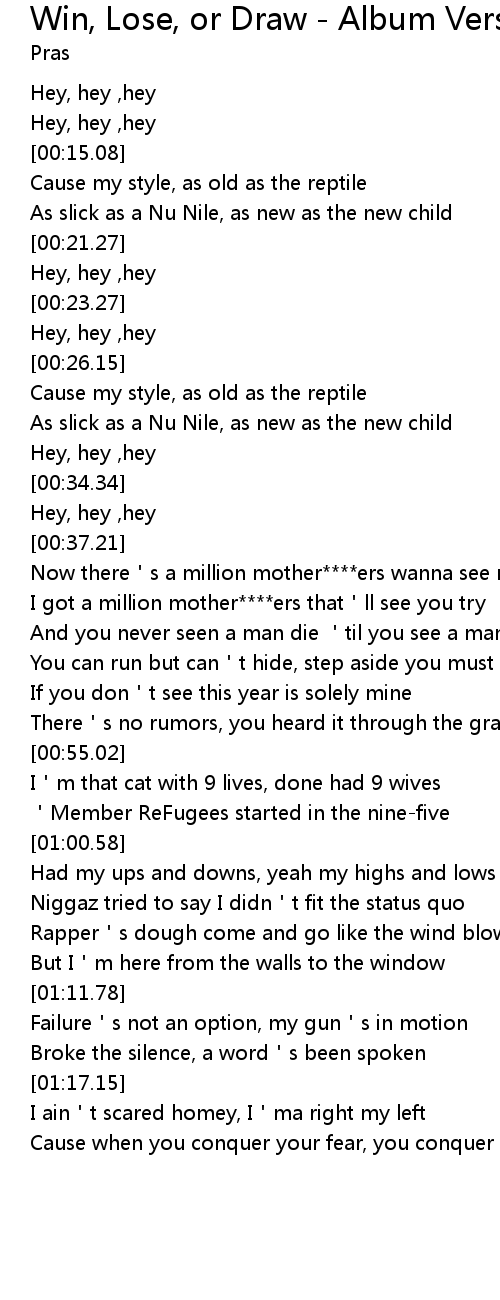 | Song | Win, Lose, or Draw - Album Version (Explicit) |