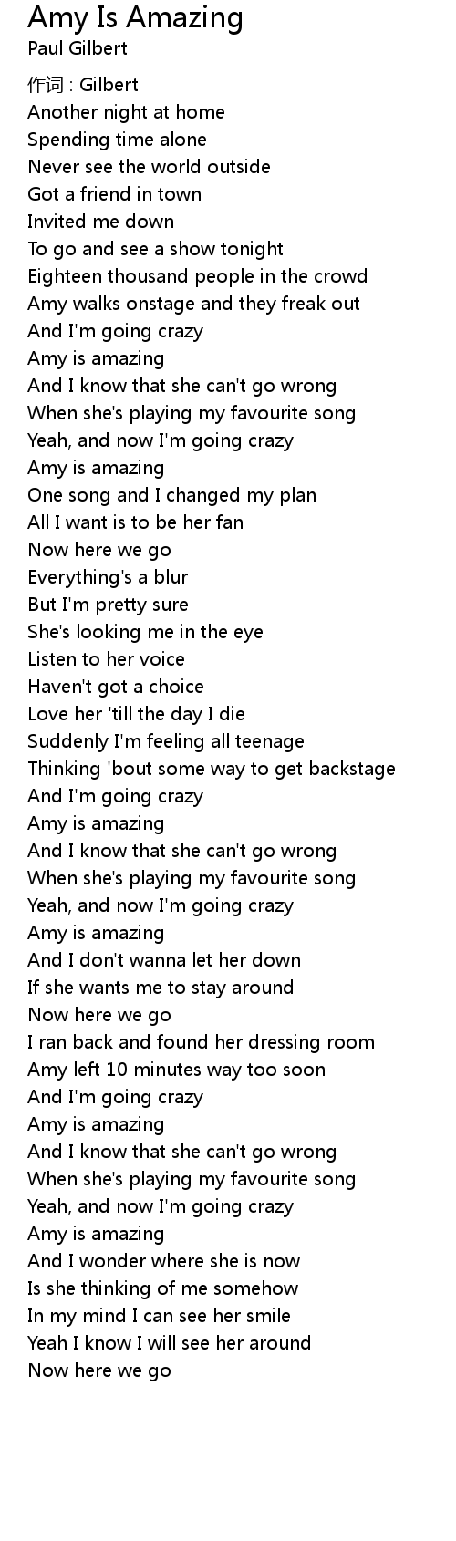 | Song | Amy Is Amazing |
