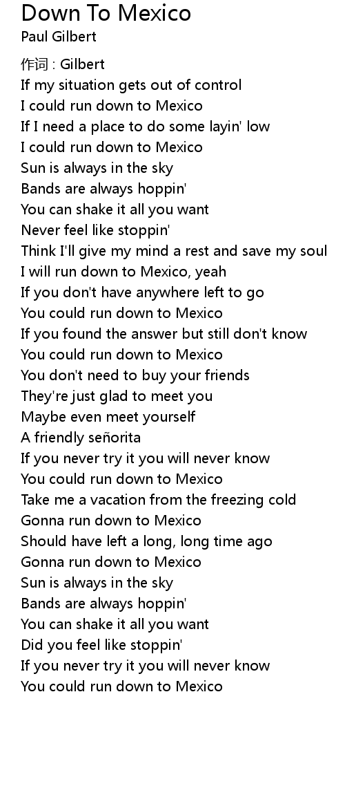 | I could run down to Mexico | |