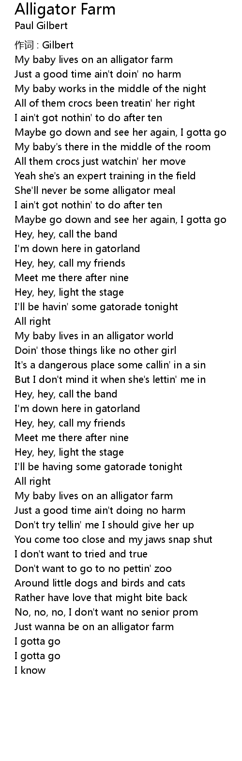 | Song | Alligator Farm |