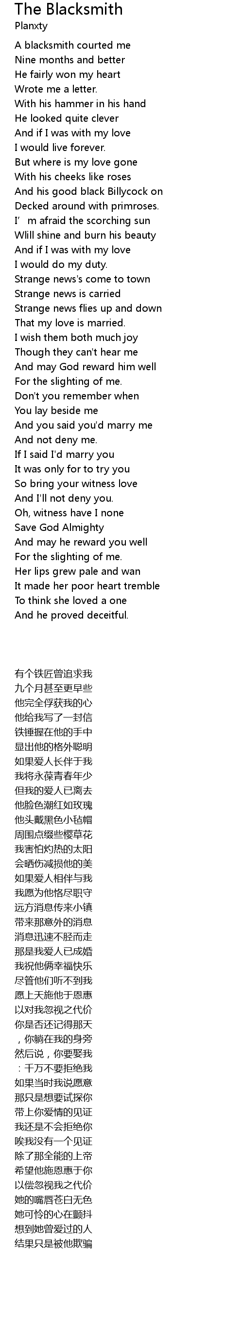 | [00:07.67] | A blacksmith courted me |
