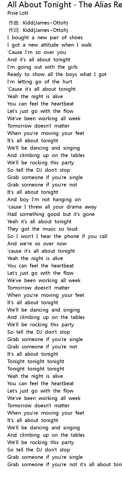 | [02:52.238] | Grab someone if you're not it's all about tonight |