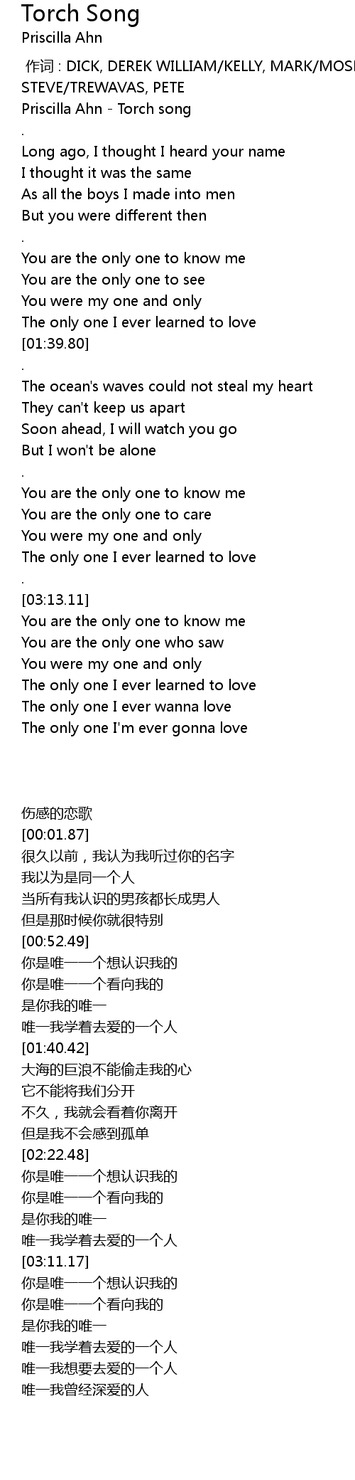 | [00:00.25] | Priscilla Ahn Torch song |