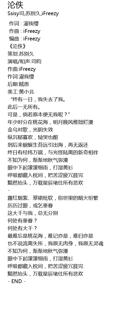 | [02:05.692] | 也不说流离失所,我原无肉身,我原无灵魂 |