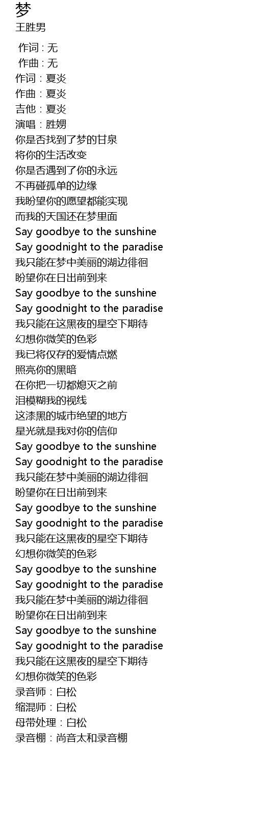 | [00:36.373] | 而我的天国还在梦里面 |