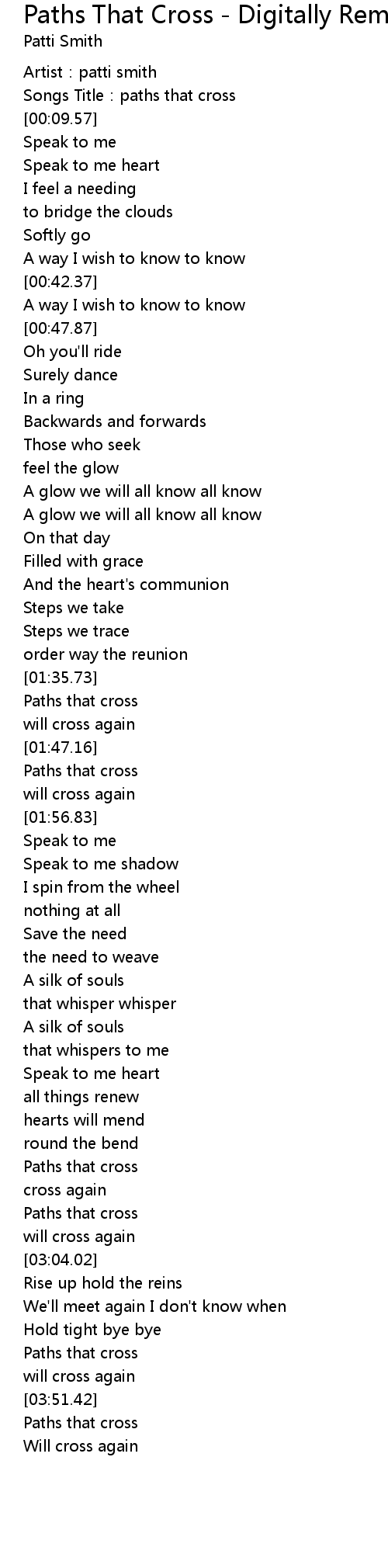 | [03:46.57] | Paths that cross |