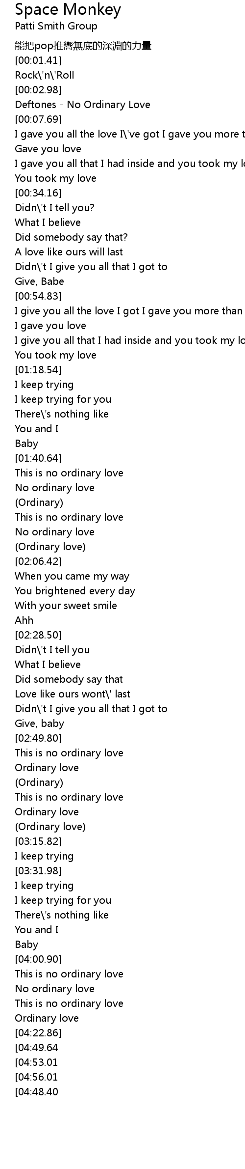 | [04:06.50] | No ordinary love |