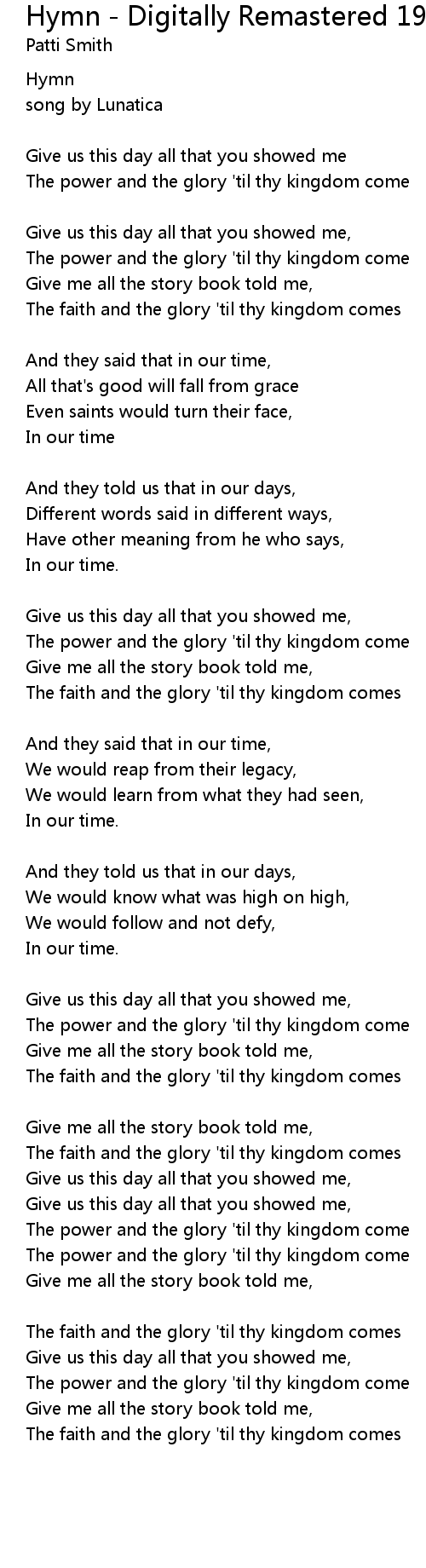 The power and the glory 'til thy kingdom come |