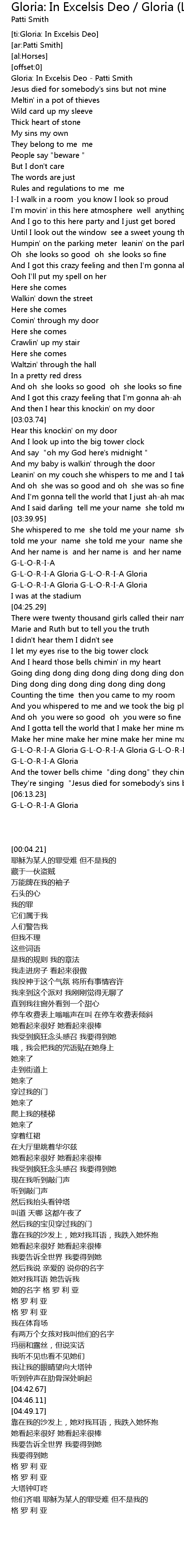 Gloria: In Excelsis Deo - Patti Smith |