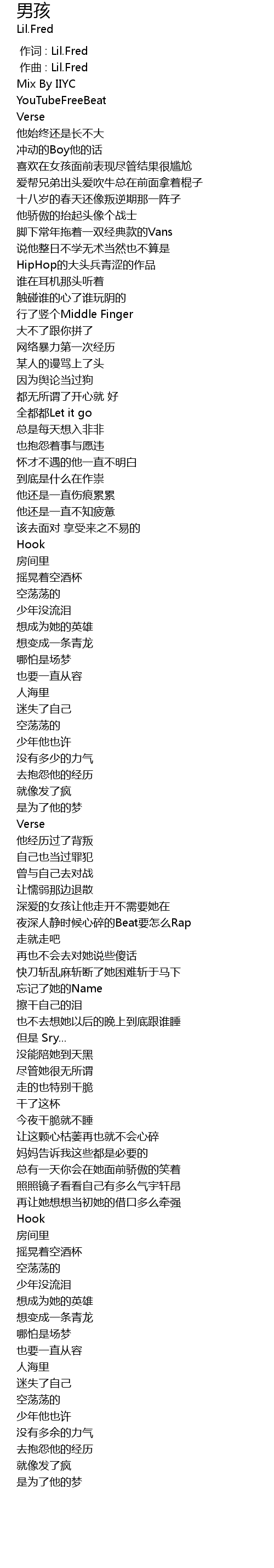| [00:00.000] | 作词 : Lil.Fred |