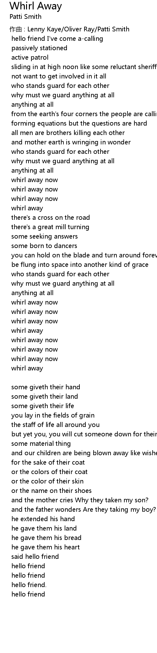 | 作曲 : Lenny Kaye/Oliver Ray/Patti Smith | |