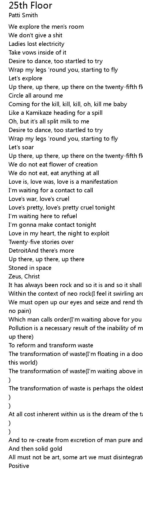 Up there, up there, up there on the twenty-fifth floor |