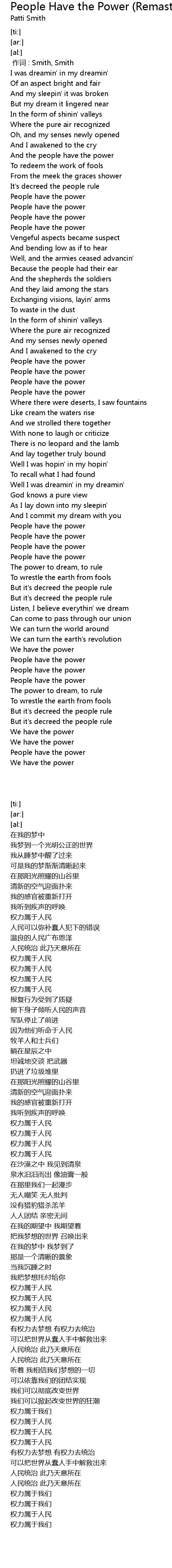 | [01:01.00] | People have the power |