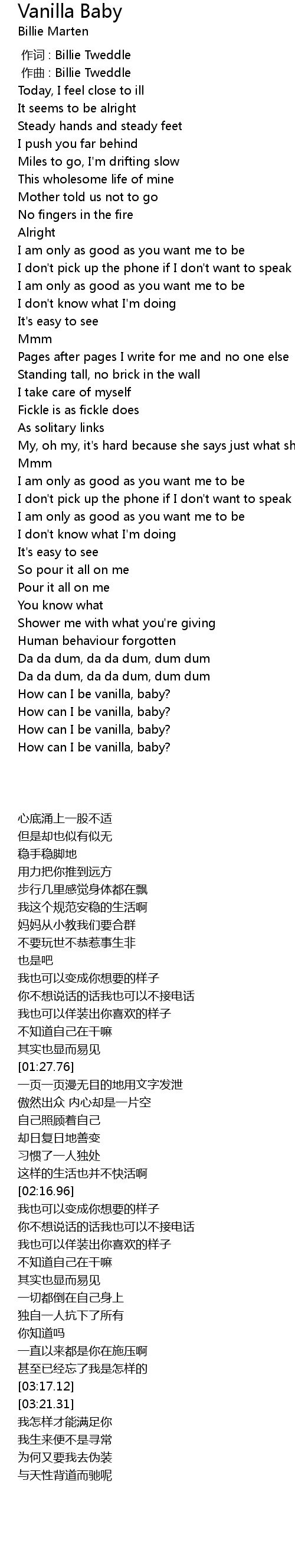 | [03:38.28] | How can I be vanilla, baby? |