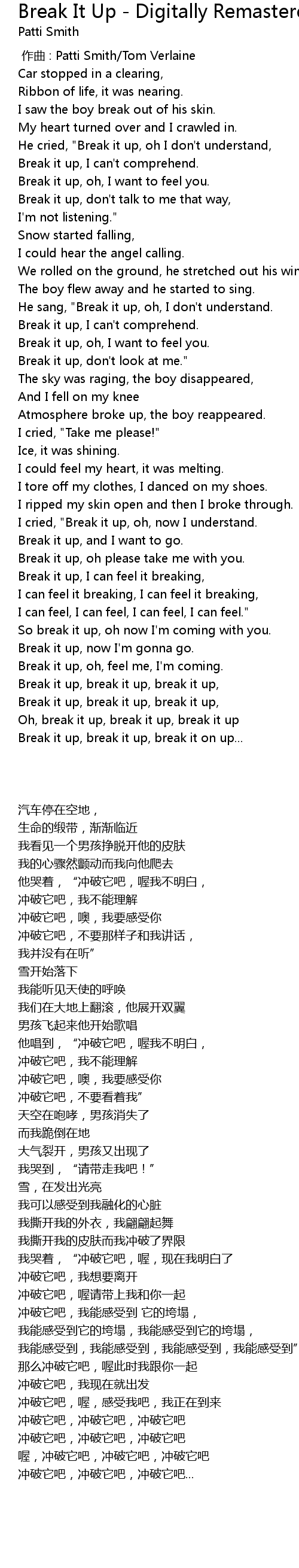 | [03:15.86] | Oh, break it up, break it up, break it up |