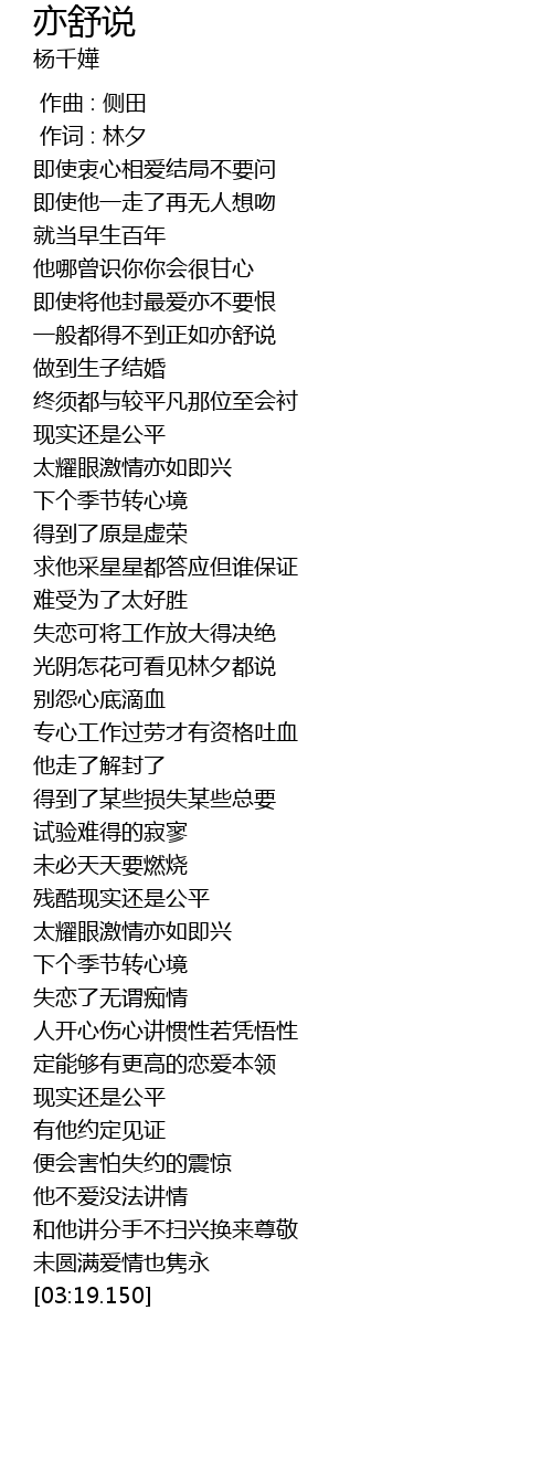 | [03:05.160] | 和他讲分手不扫兴换来尊敬 |