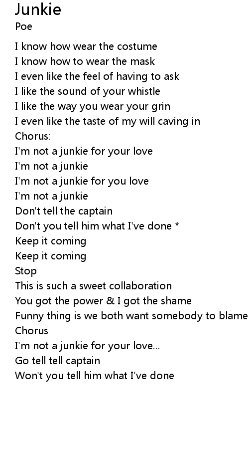 | I'm not a junkie for your love | |