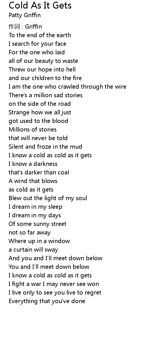 | Song | Cold As It Gets |