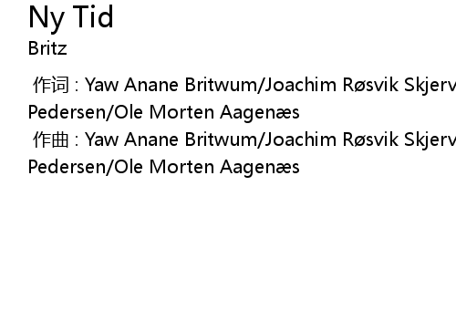 | [00:00.000] | 作词 : Yaw Anane Britwum/Joachim Røsvik Skjervum/Lars Ruben Pedersen/Ole Morten Aagenæs |