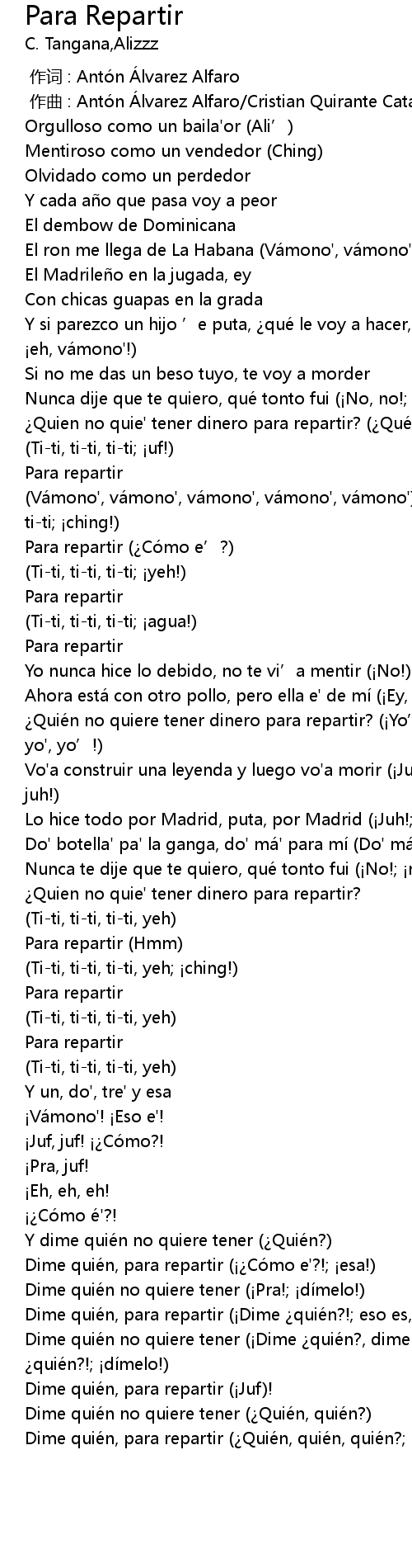 | [02:33.35] | Dime quién, para repartir (¡Dime ¿quién?!; eso es, eso es) |