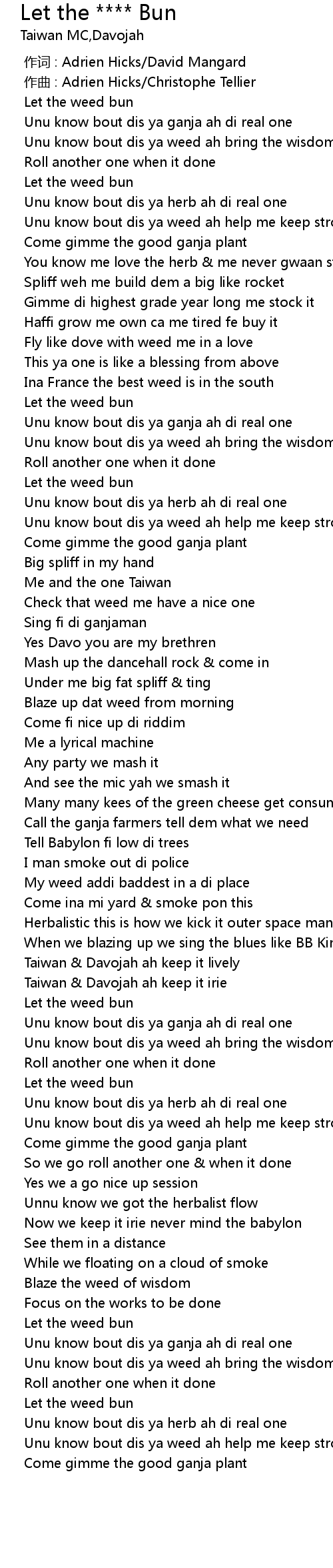 | [02:17.122] | Blaze up dat weed from morning |