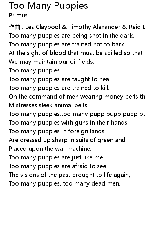 | Song | Too Many Puppies |