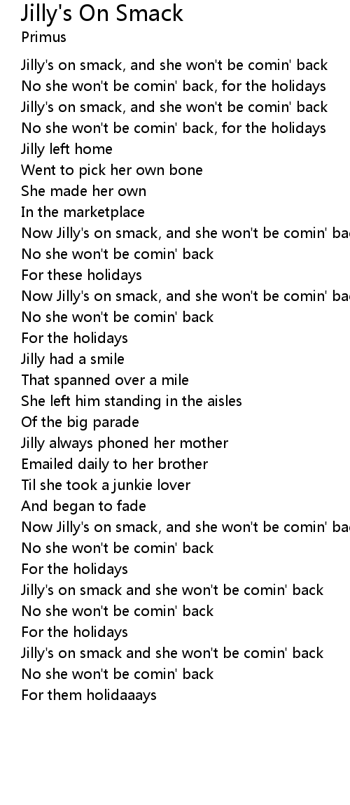 Jilly's on smack, and she won't be comin' back |