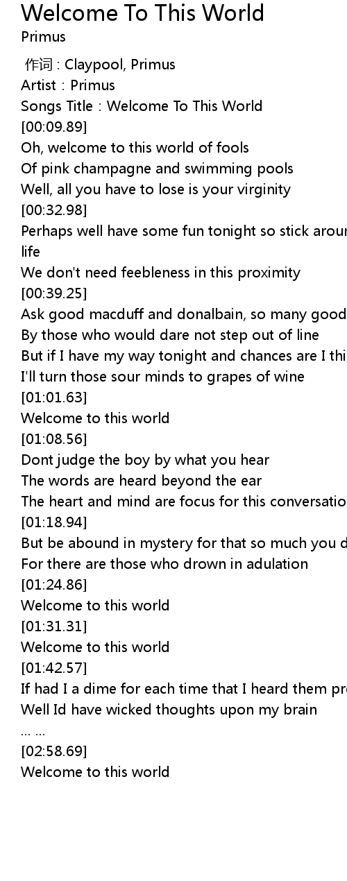 | [00:00.00] | zuò cí : Claypool, Primus |