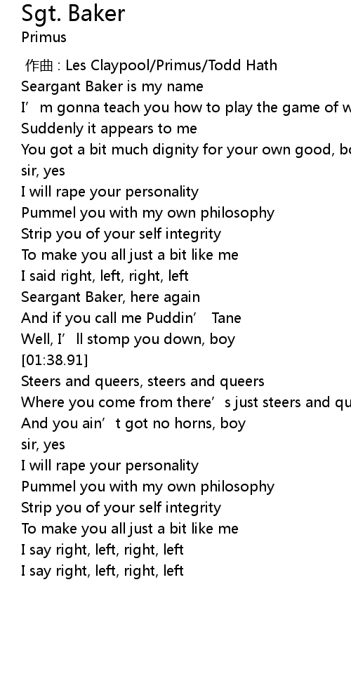 | [00:00.00] | 作曲 : Les Claypool/Primus/Todd Hath |