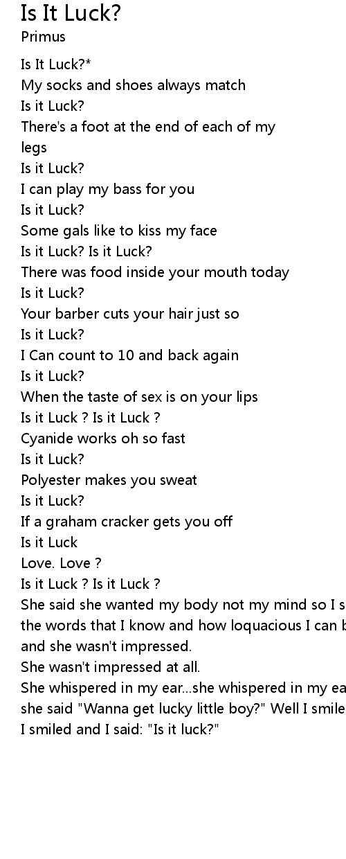 she said "Wanna get lucky little boy?" Well I smiled. |