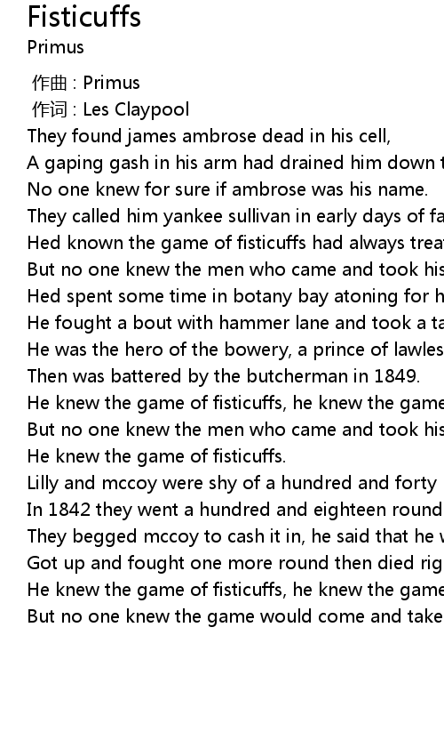 | [03:05.00] | He knew the game of fisticuffs, he knew the game of fight. |