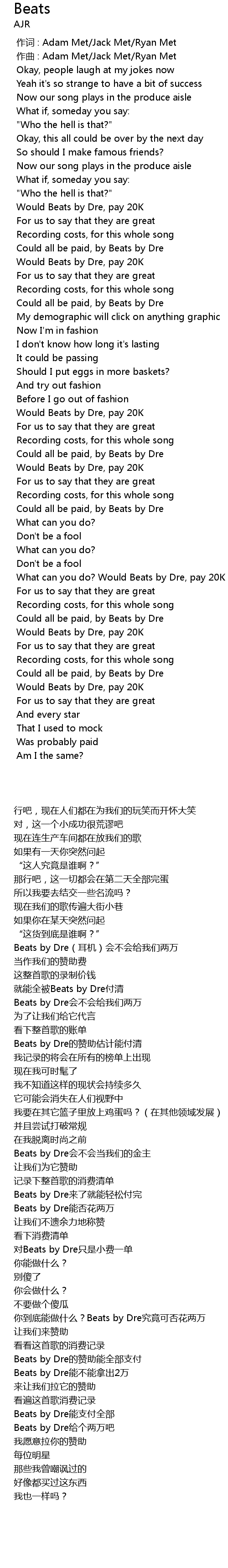 | [02:58.225] | Could all be paid, by Beats by Dre |