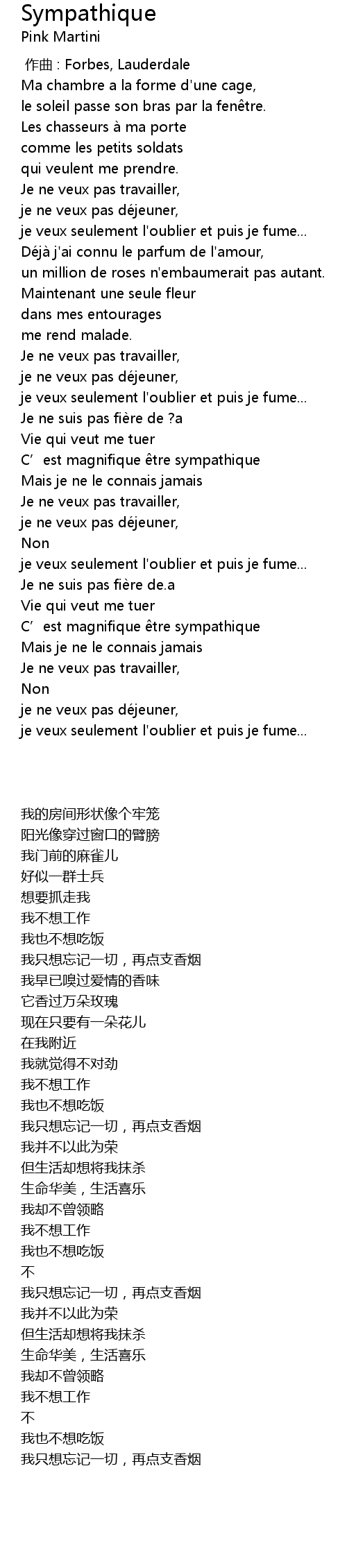 | [02:26.389] | je veux seulement l' oublier et puis je fume... |