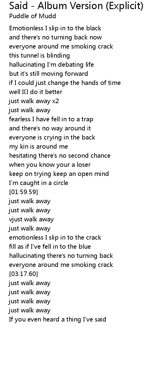 | [00:57.52] | just walk away x2 |