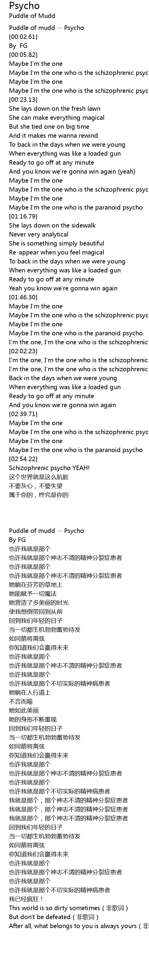| [00:01.01] | Puddle of mudd -- Psycho |
