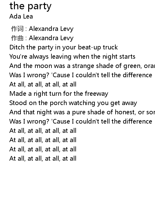 | [00:00.000] | zuo ci : Alexandra Levy |