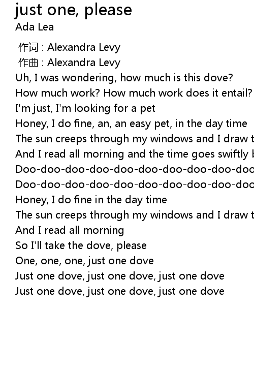 | [01:42.073] | Just one dove, just one dove, just one dove |