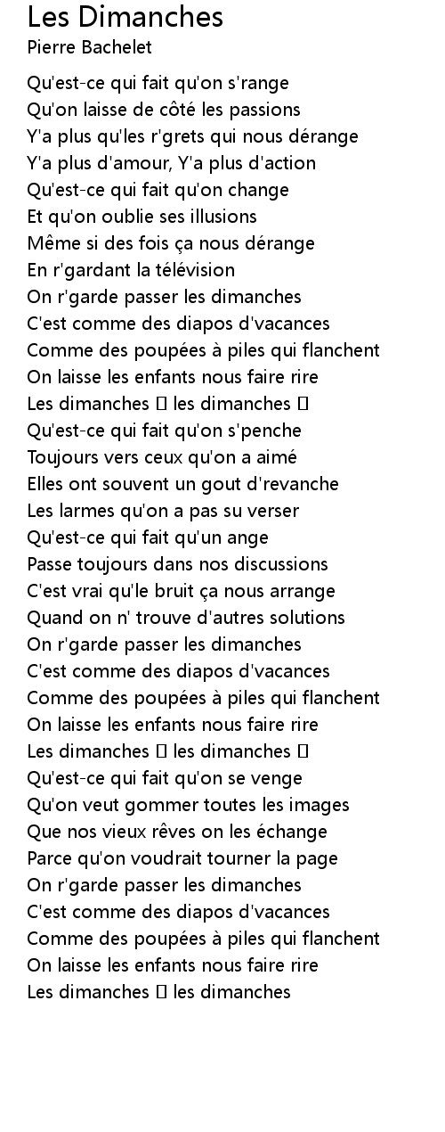 | Y' a plus qu' les r' grets qui nous dé range | |